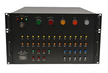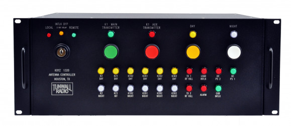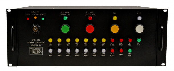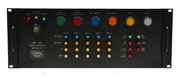 Like the TRC Series, Tunwall Radio AM directional controllers feature simple pushbutton operation. Timed sequences remove RF power, move contactors and verify positions before RF power is restored. Front panel indicators show pattern and transmitter in use, and position of all RF contactors in the system. Local, off and remote modes are selected with a key switch. There is also an emergency bypass mode.